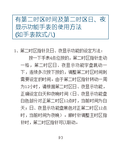 - 有第二時區(qū)時間及第二時區(qū)日、夜顯示功能手錶的使用方法 ......................................... 93